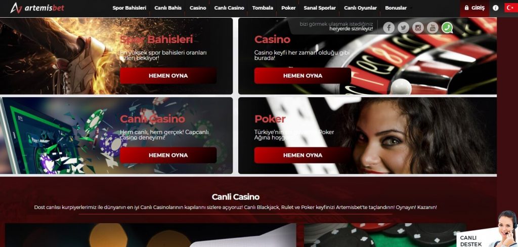 Artemisbet tv canlı maç seyretme özelliğinden istifade edebilirsiniz ve bu özellikle beraber daha isabetli bir halde kupon yapabilirsiniz. 2013 senesinde yasal yapılandırmasını Curaçao hükümetinin vermiş olduğu sertifika ile tamamlayarak gösterim yaşamına başlayan canlı bahis sitesi ülkemizde Every Matrix altyapılı şirketinda makalelım desteği almaktadır. Canlı bahis bürosu güzel kurmacamlı bir siteyle üyelerinin karşısına çıkarken gün geçtikçe popülerliğini ve standardını artırıyor. Dolayısıyla canlı bahis sitesi yeni üyeler kazanarak yoluna devam ediyor. Özellikle Artemisbet spor bahisleri noktasında kullanabileceğiniz çok önemli vasıtalar sitede bulunmaktadır. Maç bülteni istatistikler benzer biçimde önemli vasıtalardan dilediğiniz zamanda faydalanabiliyorsunuz. Bu vasıtaların zirvesinde ise her zaman için canlı maç yayınları bulunmaktadır.