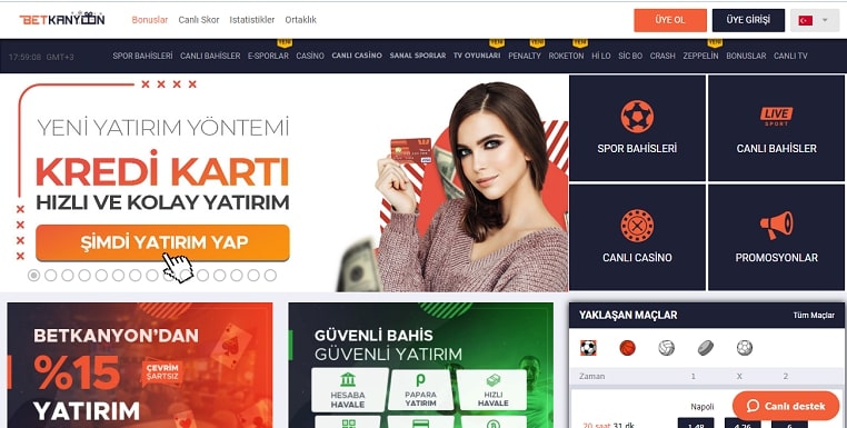 Bahis severler için en ideal sitelerden birisi olan Betkanyon, niçin ülkü bir site bulunduğunu bizlere canlı tv hizmeti ile de kanıtlamaktadır. Betkanyon başta spor bahisleri olmak üzere casino ve öteki hizmet verdiği alanlarda üyelerine çok fazla sayıda içerik sunmaktadır. Artık tüm siteler yakın rakamda içerik sunuyor olsa da bunu hem yüksek rakamda hem de güvenli siteler ender bulunmaktadır. Bu nadir sitelerden birisi olan Betkanyon sitesi üyelerine spor bahisleri alanında sunmuş olduğu spor karşılaşmalarının hemen hemen hepsini canlı yayınlarda sunmaktadır. Bu sayede spor bahsi oynayan kişiler analizlerini takımların maçlarını site üzerinden takip ederek yapabilir veya canlı bahis oynayan kişiler bahislerini canlandırırken canlı yayınlardan yardımcı alabilirler.