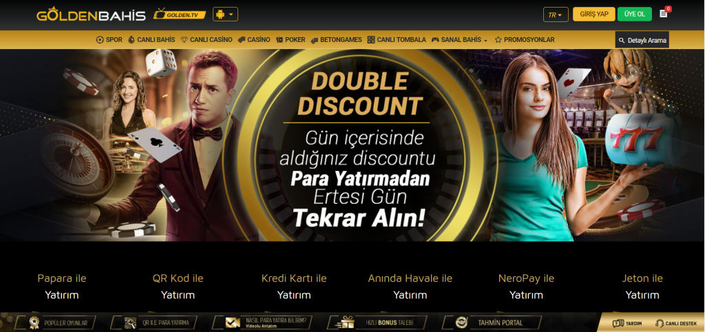 Canlı bahis seçenekleri ise bahis severler tarafınca da dikkat çekmektedir. bahis olduğu gibi bununla beraber da casino oyunları bulunmaktadır. Casino oyunları içinde poker, bakara, blackjack ve rulet oyunları bulunur. Canlı casino seçeneği ile reel kişilerle oyun oynayabilirsiniz. hem de slot oyunları da Goldenbahis sitesinde bulunmaktadır.