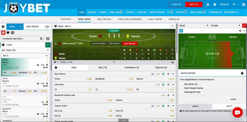 Sporlar, canlı, sanal, online casino, slots, turnuvalar, Betgames televizyon, blast ve tombala bölümleri bulunan bahis sitesi, sıkılmaktan bıkmayacağınız seçeneklerle, sizlere bahis zevkinizi doruklara çıkarmanız için yardımcı olmaktadır. ek olarak canlı casino sekmesindeyse Betconstruct, Evolution, Lucky Streak, Fashion televizyon, Vivo Gaming, GameBoom altyapısında gerçekleştirilen blackjack, roulette, bet on poker, baccarat, keno, double red dog, casino hold’em oyunlarına ulaşarak, krupiyerler eşliğinde canlı gösterilen masalara oturabilmektesiniz! Joybet Casino oyun seçeneklerini sevenler için oluşturulmuş bu bölümden derhal aramıza katılarak yararlanabilirsiniz!