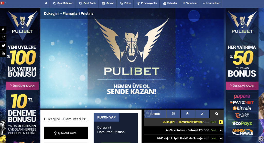 Uzun bir süredir bahis sektöründe olan ve Curoçao lisansı ile hizmet veren Pulibet sitesi üyelerine geniş avantajlar sağlamaktadır. Bahis sitesinden beklentiyi en iyi şekilde karşılayan Pulibet hem bonusları bununla beraber geniş oyun seçenekleri ile son derece yüksek standartlarda bir platformdur. Pulibet bonusları kazanmak için siteye üyelik yapılması en önemli kriterler arasında yer almıştır. Bununla beraber her bonus için ne olursa olsun kullanım bilgisi önceden edinilmelidir.