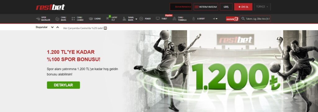 Restbet canlı casino giriş seçeneklerini kullanarak sitede yer alan canlı casino oyunlarına bağlanabilirsiniz. Sitenin sunduğu tüm casino oyunları kaliteli ve fazlaca hızlı şekilde kullanıcılara aktarılmaktadır. ancak casino oyunlarında değil hem de da canlı bahis oyunlarında da siteden faydalanabilirsiniz. Üstelik sitede farklı spor branşında müsabakaların her biri kullanıcılara yüksek canlı bahis oranları sunmaktadır. Futbol, basketbol ya da voleybol gibi, spor dallarını kullanarak bir çok alanda canlı bahis seçeneği değerlendirebilirsiniz. Sitenin sunmuş olduğu kaliteli hizmetten ve bahis alanındaki yüksek hasılatlardan istifade etmek için üyelik oluşturmanız ehil olacaktır. Üyeliğinizi oluşturduktan sonrasında bütün canlı bahis ve casino oyunlarından yararlanabilirsiniz.